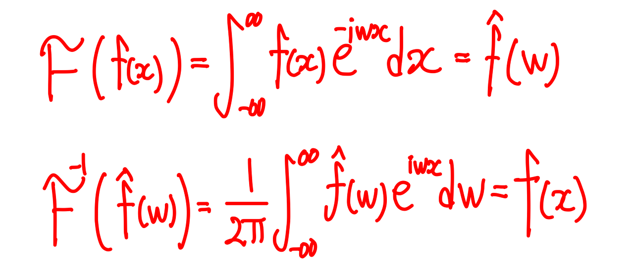 함수 $f(x)$가 domain $x$에서 $x$에 대한 변화를 측정하기 어려울 때 푸리에 변환을 통해 domain $w$에서 구한뒤 이를 역변환 하여 구하는 방법을 사용할 수 있다.