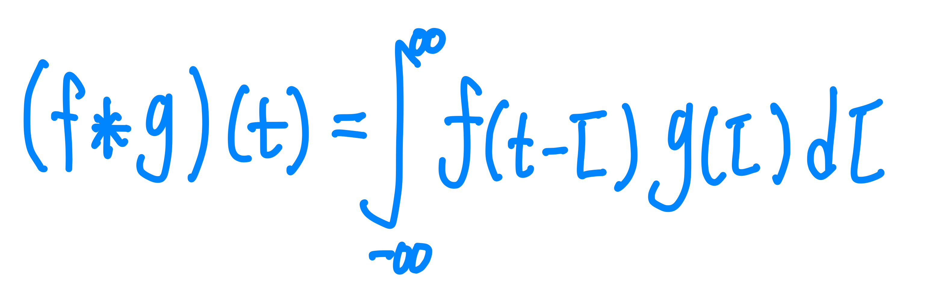 두개의 함수 $f$와 $g$가 있을 때 두 함수의 합성곱은 다음과 같이 나타난다.