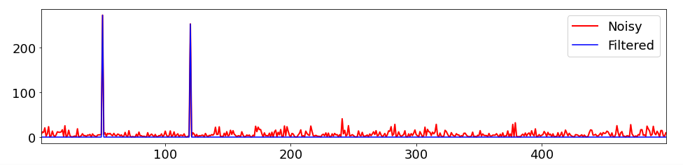 Fittering을 통해 원래 파형을 구성하고 있는 진동수의 푸리에계수만 남기고 나머지 noise의 푸리에계수는 모두 제거한 것이다.