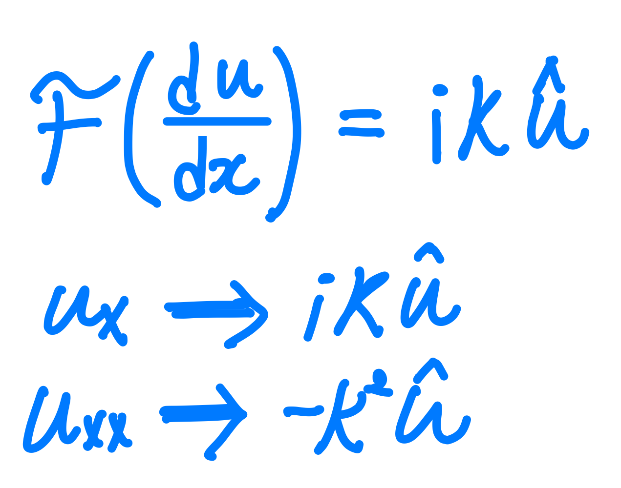 따라서 편미분 방정식을 푸리에 변환하게 되면 다음과 같이 바뀌게 된다.
