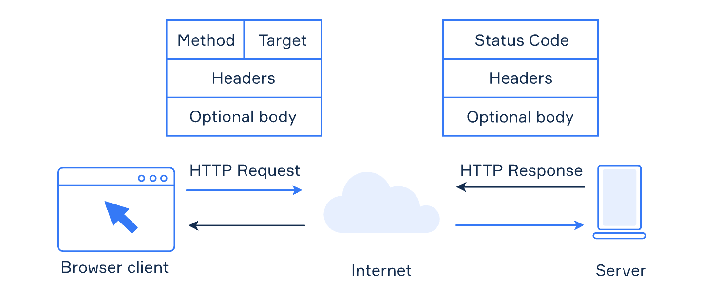 - HTTP(HyperText Transfer Protocol)은 Client와 Server사이에서 메시지를 주고받으며 정보를 교환하는 구조를 띤다.