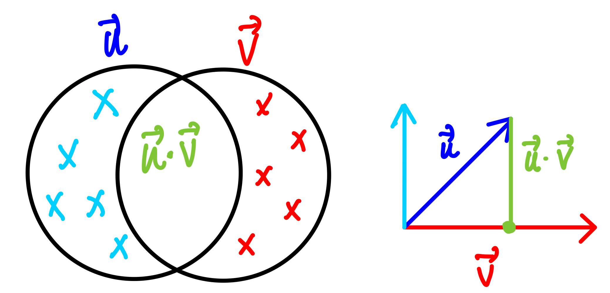 각 벡터가 가지고 있는 크기성분 중 내적을 통해 서로 동시에 갖고 있다고 확인된 부분만 추출하여 나타내는 것이므로
