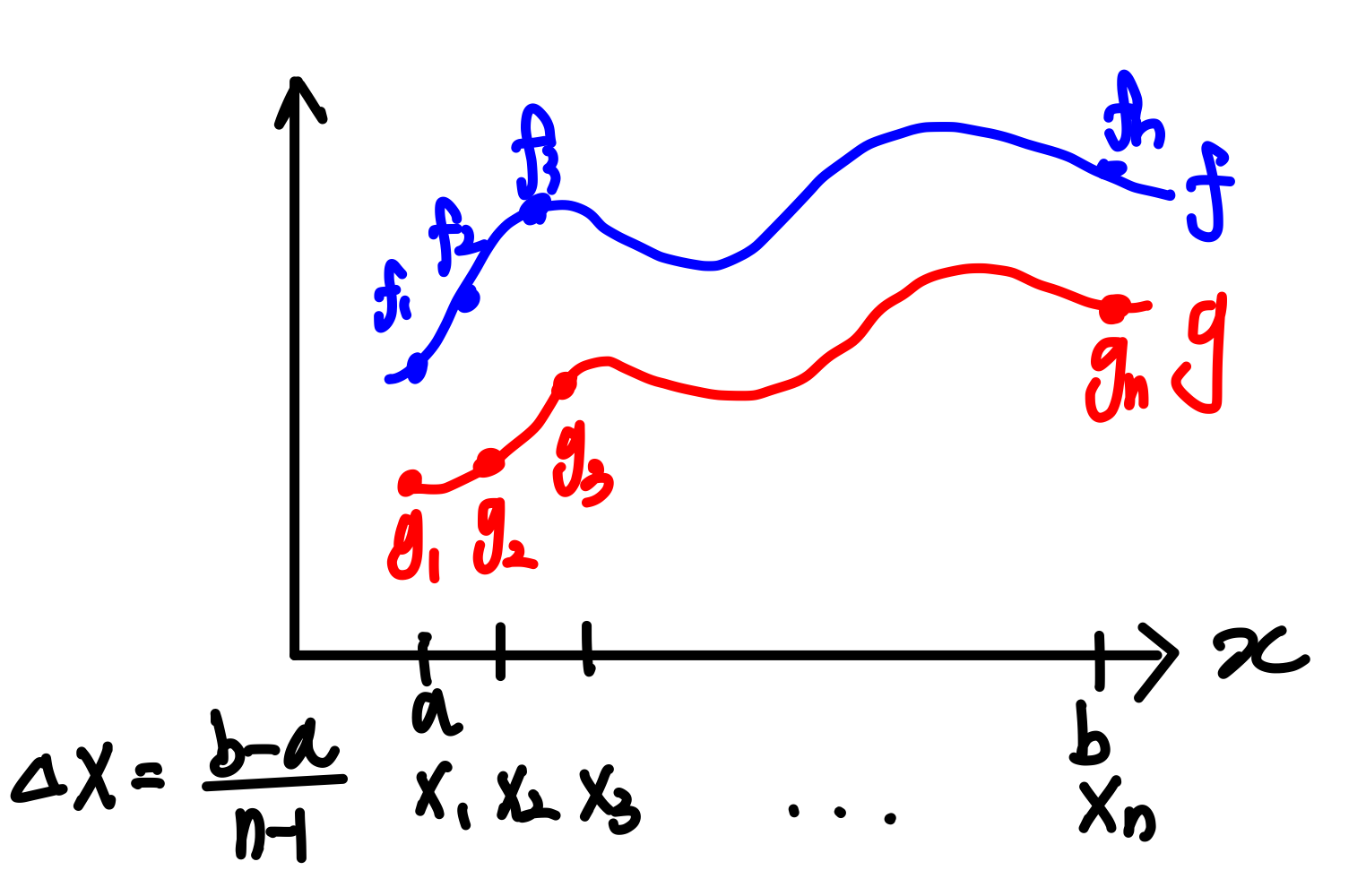 일정한 간격 $\Delta x$간격으로 함수상의 점들을 샘플링한다.