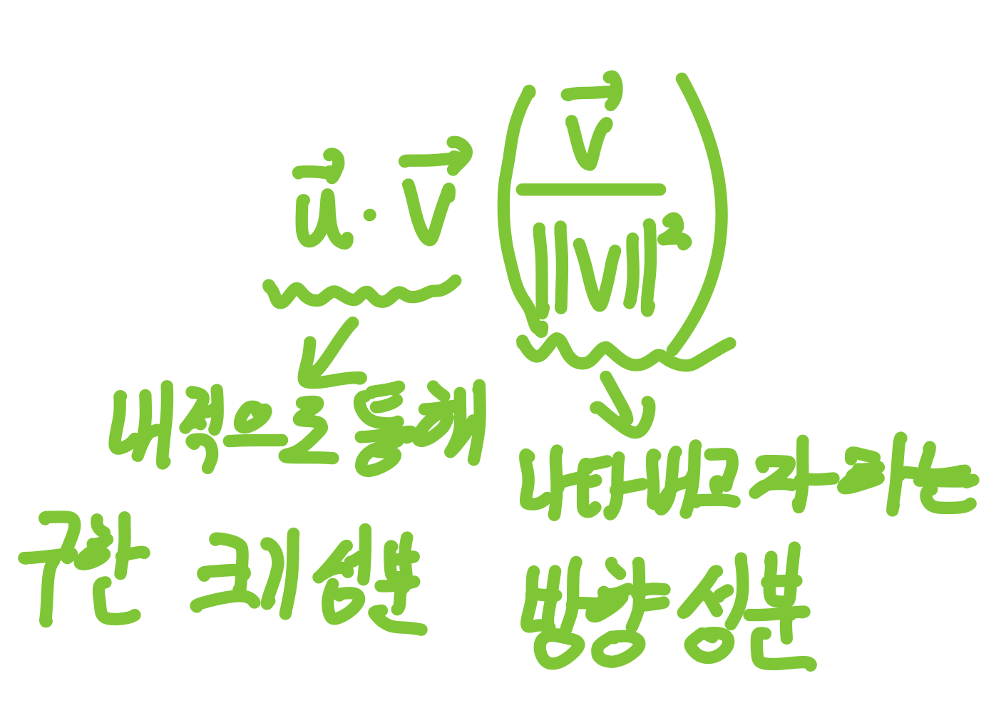 나타내고자하는 벡터의 방향성분만 가지고와 합쳐줘야한다. 즉 정규화가 필요하다.