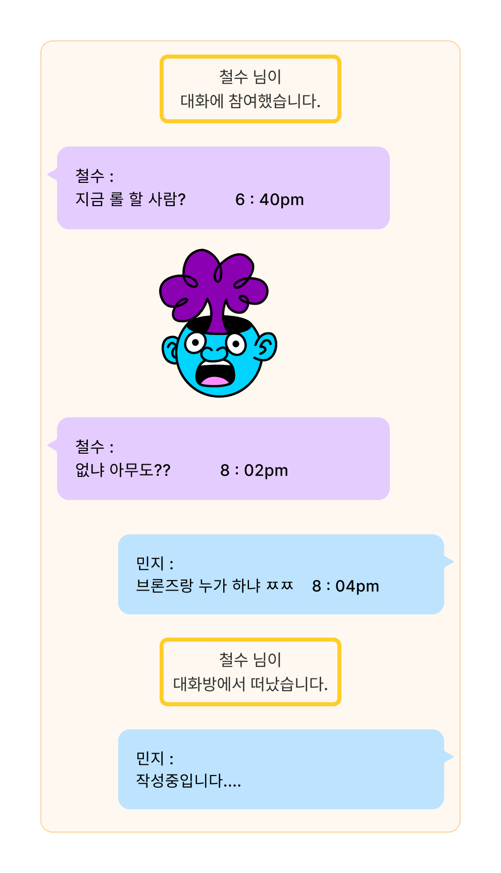 - 참여 메시지 : “철수 님이 대화에 참여했습니다.”