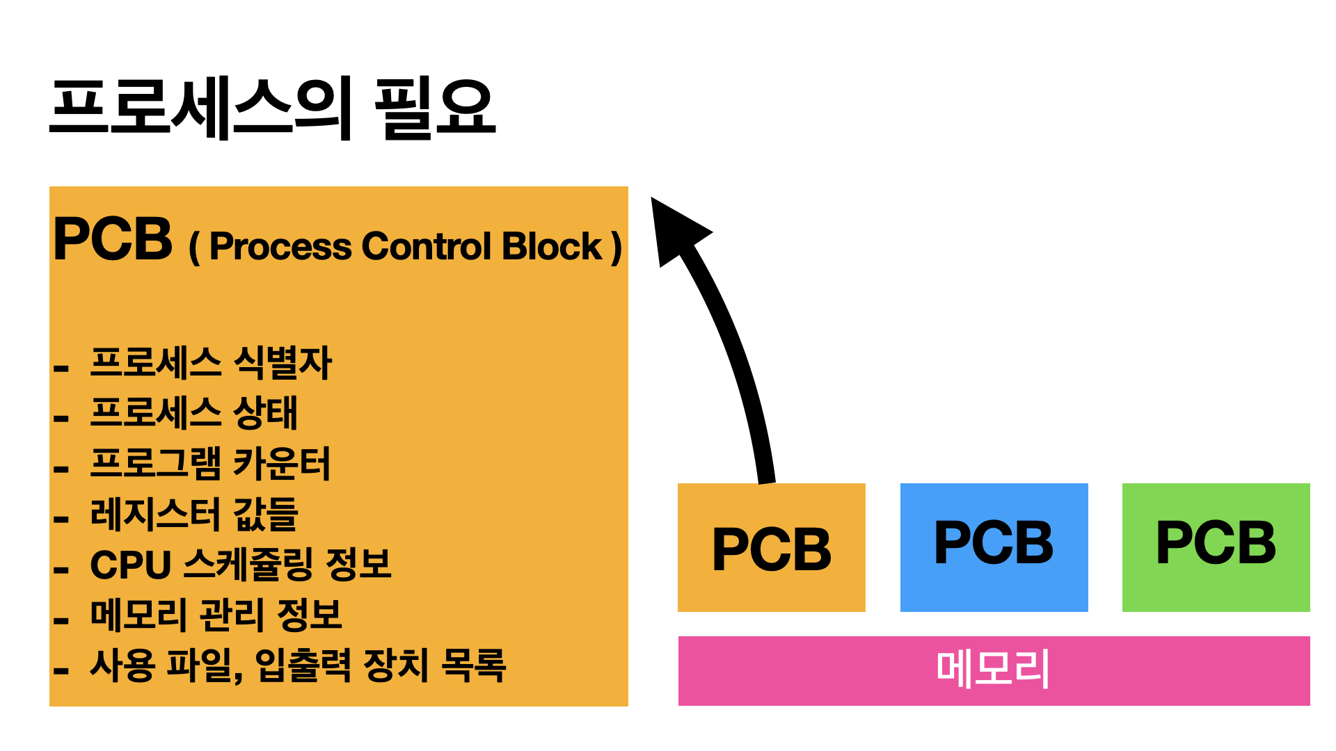 PCB는 각 프로세스의 정보를 저장하는 데이터 구조입니다.