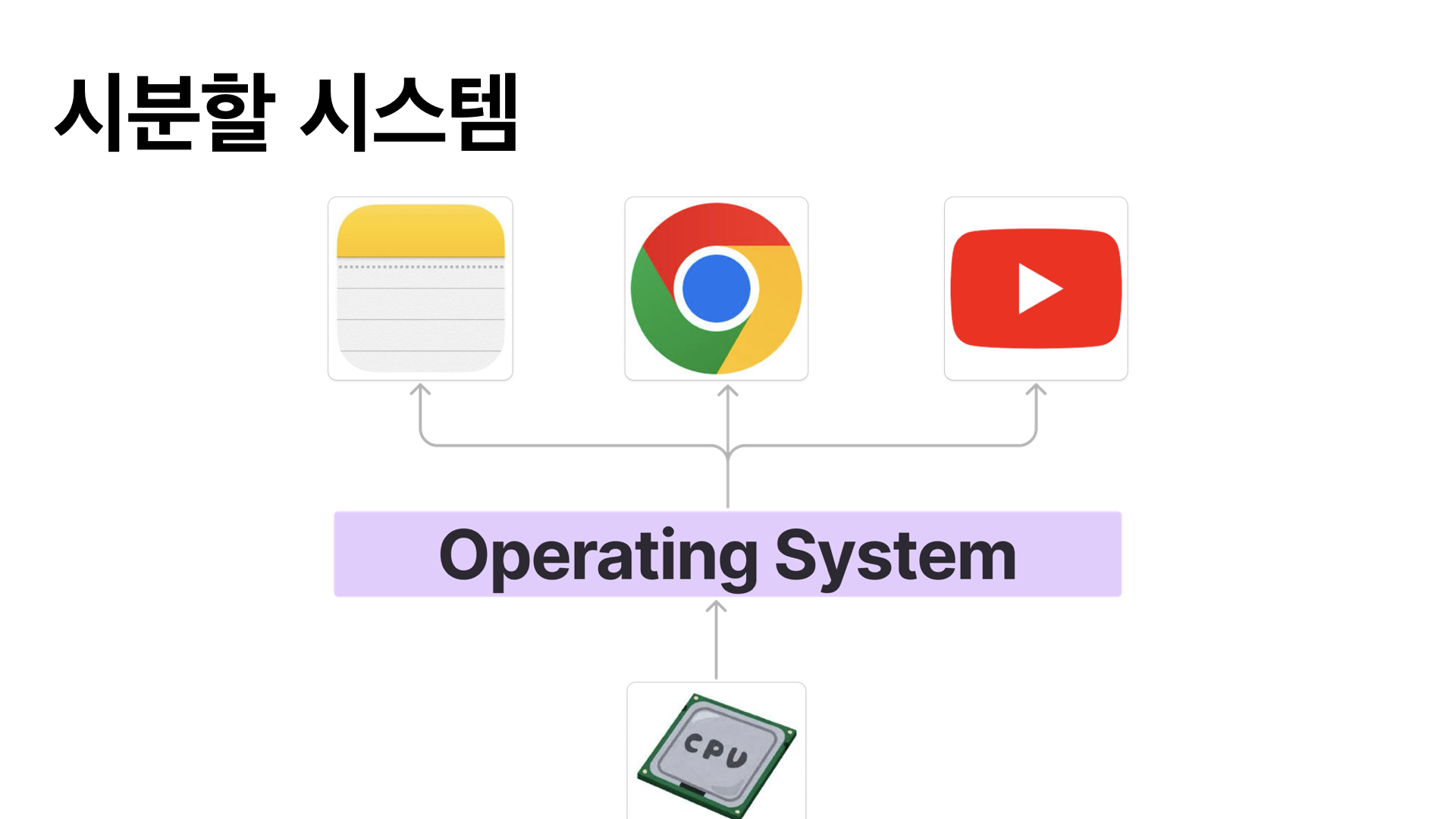 시분할 시스템은 “CPU를 사용할 수 있는 시간을 아주 작은 조각으로 나누어서, 여러 프로그램이 번갈아가며 실행되면 어떨까?”라는 아이디어에서 출발했습니다.