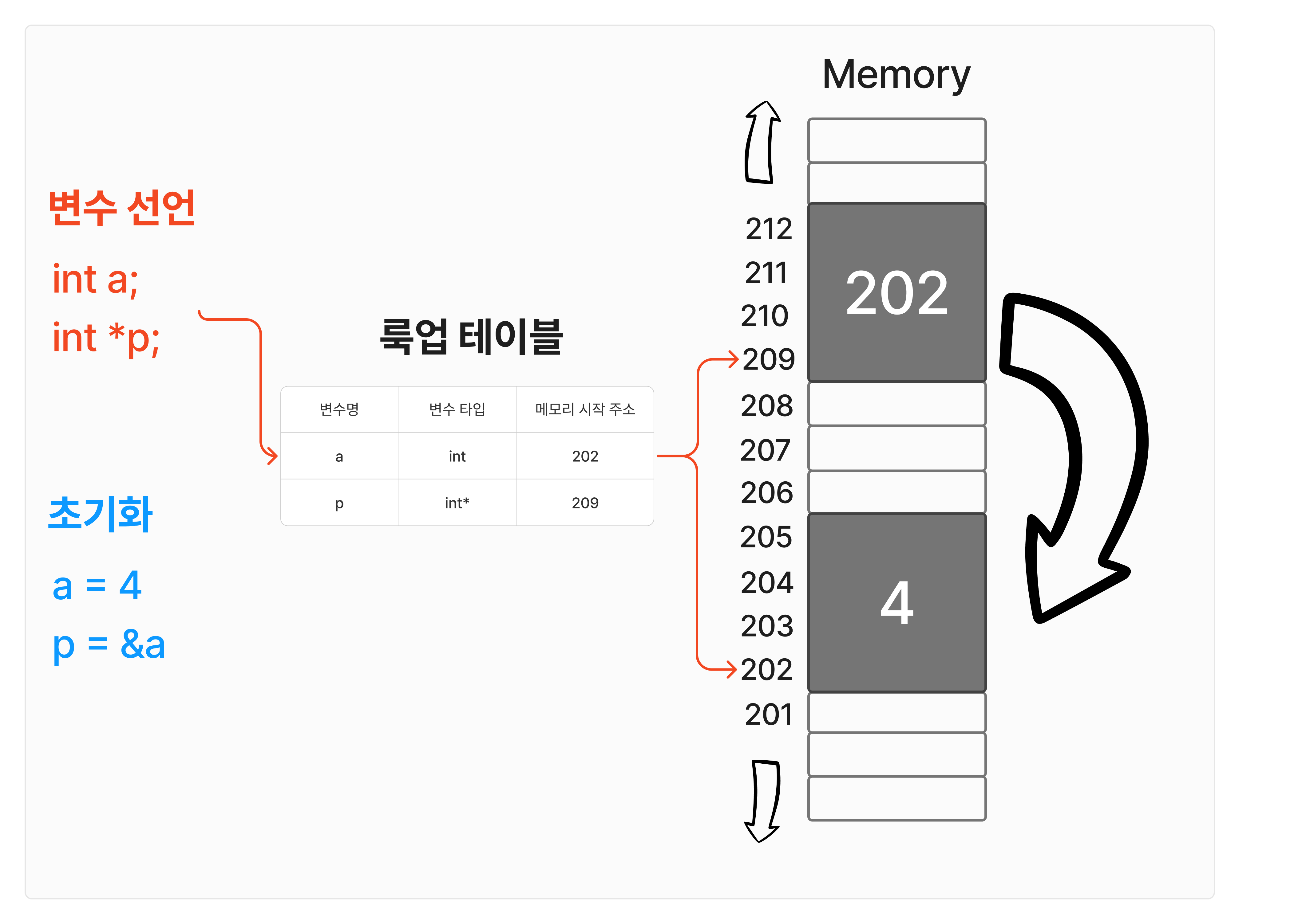 하지만 일반적인 값이 아닌 메모리의 주소값을 저장하기 위해 사용하는 변수가 있는데 이를 포인터라고 부릅니다.