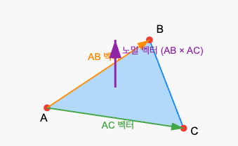 - 노멀 벡터 = AB × AC